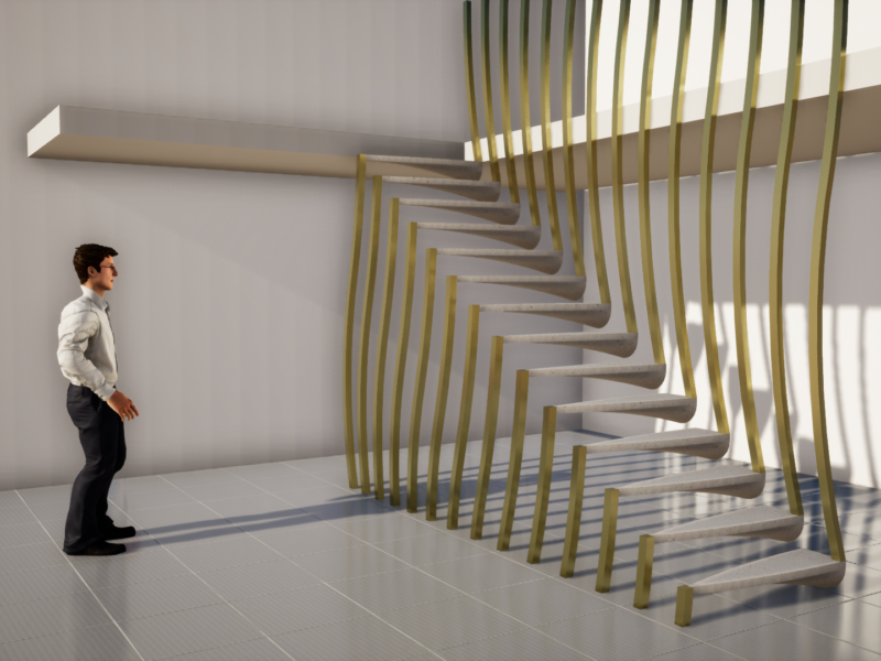 L’idée de notre projet est de venir créer un escalier monumental en lévitation. Cette idée nous est venue de deux références incontournables dans le domaine technique et de créatio